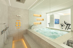 On the main level, there is an open-plan living room that connects to the dining room and kitchen. This space, designed for both daily living and special occasions, has direct access to the outside and panoramic views. The kitchen is equipped with modern technology and carefully selected finishes. The master suite, with sea views, features a dressing room and private bathroom.