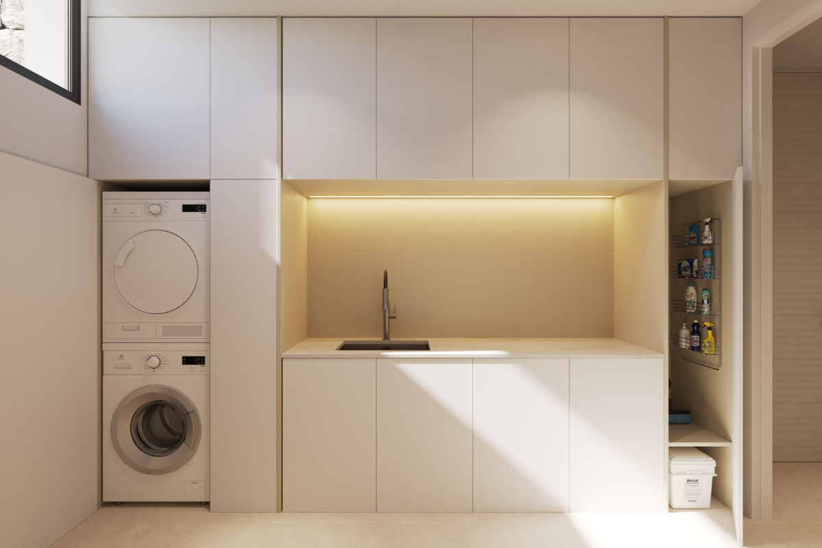 Elke woning is verspreid over twee zorgvuldig ontworpen verdiepingen om natuurlijk licht en de verbinding met buiten te maximaliseren. De hoofdvloer beschikt over een ruime open-plan woon-, eet- en keukengebied dat volledig opengaat naar het overdekte terras, de tuin en het privézwembad, waardoor een naadloze binnen-buitenruimte ontstaat die ideaal is om te ontspannen of gasten te ontvangen.