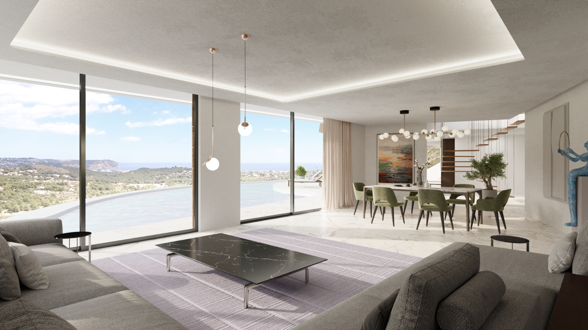 Deze indrukwekkende moderne villa, gekenmerkt door haar eigentijdse architectuur en unieke ontwerp, is gelegen in de gewilde woonwijk Monte Olimpo in Jávea. Vanuit deze bevoorrechte locatie geniet de woning van weidse panoramische uitzichten op zowel de zee als de bergen, terwijl het strand, voorzieningen, internationale scholen en de Jávea Golf Club zich op korte afstand bevinden.