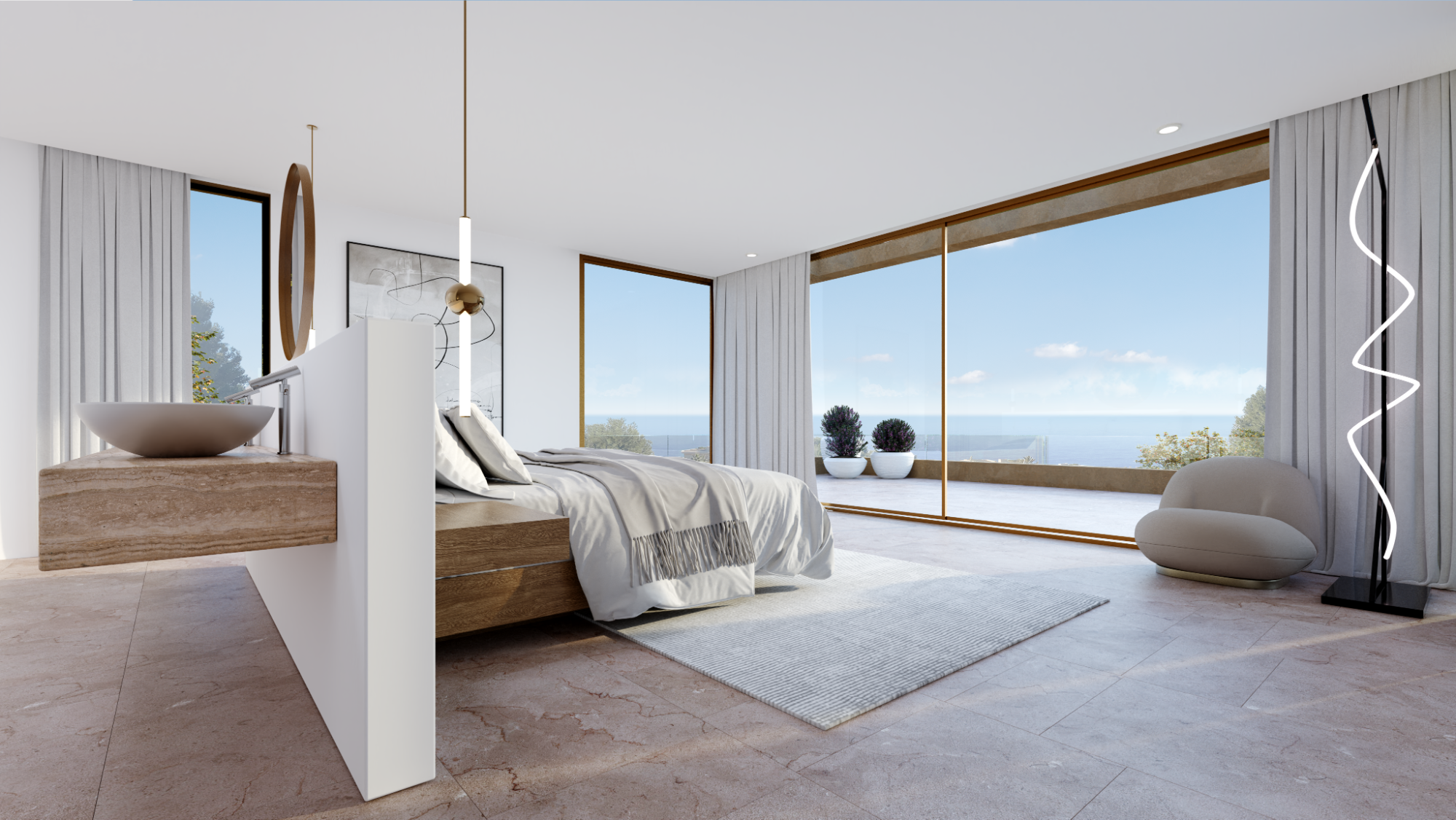 Gelegen op een ruim perceel, geniet de villa van een bevoorrechte verhoogde ligging die privacy, rust en een spectaculair uitzicht garandeert. De bovenverdieping beschikt over vier elegante slaapkamers, elk met een eigen en-suite badkamer, wat zorgt voor een perfecte balans tussen comfort en verfijning.