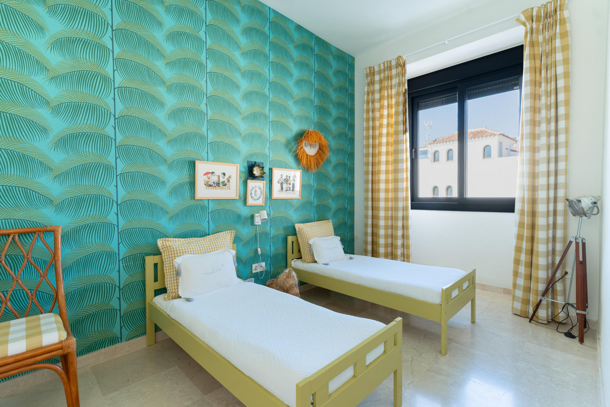 De begane grond loopt naadloos over in het buitenterras en een privé, omheinde tuin die om het huis heen ligt, zodat er een veilige oase ontstaat waar kinderen vrij kunnen spelen en u zelfs kunt genieten van verse amandelen van uw eigen boom in de tuin. Met vier ruime slaapkamers en vier badkamers garandeert de indeling privacy doordat de bovenste verdiepingen zijn gereserveerd voor de slaapvertrekken. Vanaf de eerste en tweede verdieping biedt de woning aangename uitzichten op zee en het groene landschap van de golfbaan, waardoor het de ideale plek is voor een rustig thuiskantoor of een vredig toevluchtsoord.