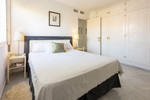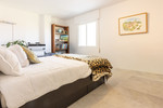 The master bedroom en-suite has a private covered terrace overlooking the communal garden and pool area.
