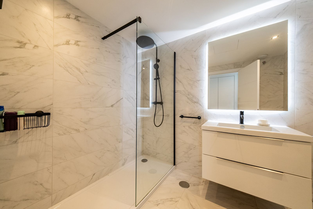 Een van de opvallende kenmerken is het enorme terras van 50 m² op het zuiden. Het terras geniet de hele dag van de zon en biedt uitzicht op zee, evenals een aangenaam uitzicht op de tuinen en het zwembad. Het is een ideale plek om te ontspannen, buiten te dineren of gasten te ontvangen, en versterkt echt het gevoel van binnen-buitenleven dat woningen in dit gebied zo aantrekkelijk maakt.