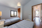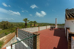 From the dining area, a staircase leads to the first floor, which can also be accessed independently from the outside. This level currently offers three bedrooms, a family bathroom with a shower, and a kitchenette, ideal for conversion into a full kitchen, additional bathroom, or dressing room. At the end of the hallway, a lovely terrace provides stunning elevated views of the surrounding landscape.