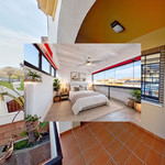 The top floor offers a bright enclosed solarium, currently converted into a fourth bedroom, with beautiful views, perfect as a relaxation area, home office, or multifunctional space.