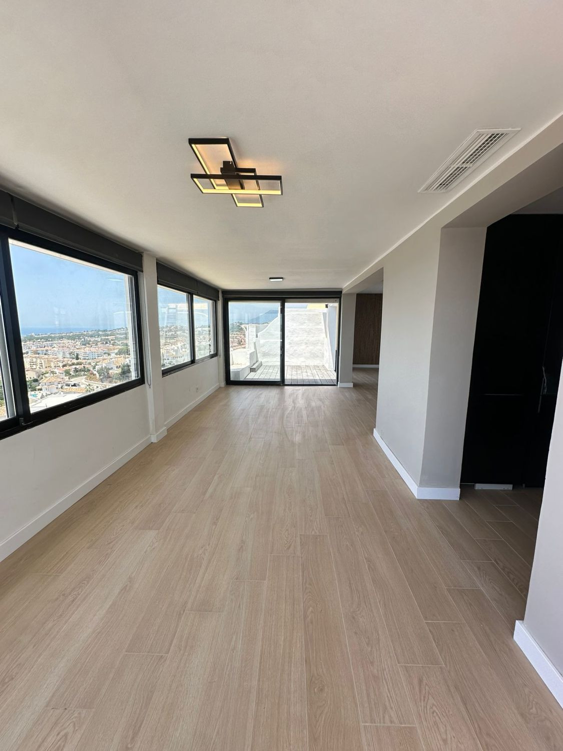 We offer this wonderful penthouse for sale in the coastal town of Mijas, province of Málaga. Located in a gated community with a communal pool and well-maintained landscaped areas, this apartment will make your stay a healthy experience, filling you with vitality and good humor. 17 km from the center of Málaga city, it will provide you with access to all the services and facilities you may need (shops, supermarkets, sports, educational, and health centers, public transportation, hospitality and catering services, government offices, and leisure facilities, such as the Miraflores Golf Course (1.7 km) or Torre Nueva Beach (2 km), among others. This wonderful home is located on a single floor and is located in the penthouse of a residential building. This first-floor apartment, with no elevator, occupies an exclusive wing of the floor, ensuring privacy as it is not shared with neighbors. It has a constructed area of 115 m², distributed among: 3 bedrooms with built-in wardrobes, a separate kitchen, two full bathrooms (one en suite), and a spacious living-dining room with access to a 22 m² terrace. This spacious area, which seems to divide the terrace in two, is located inside the living room. It features large windows and large glass doors, from which you can enjoy the beautiful 360º panoramic sea views in any season, regardless of the weather (it is sunny for most of the day). You can also spend unforgettable moments with your loved ones enjoying the beneficial Mediterranean climate on the terrace on summer nights.