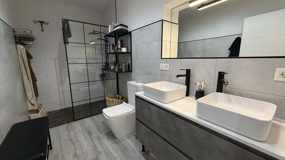 The apartment offers three well-proportioned bedrooms, all with direct access to a balcony or terrace, allowing plenty of natural light. There is also a renovated bathroom finished in a contemporary style.