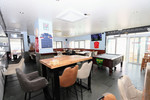 - Entertainment options including a pool table, dart board, and large screens for major events.
