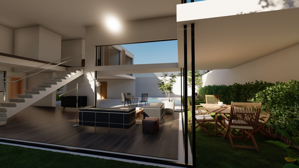 De woning heeft 3 slaapkamers en 4 badkamers, een afgewerkte keuken met apparatuur, airconditioning en elektrische rolluiken. Er is een privézwembad van 6×3 m en de mogelijkheid om vloeren, tegels en badkamermeubels te kiezen, zodat u de woning naar eigen smaak kunt personaliseren.