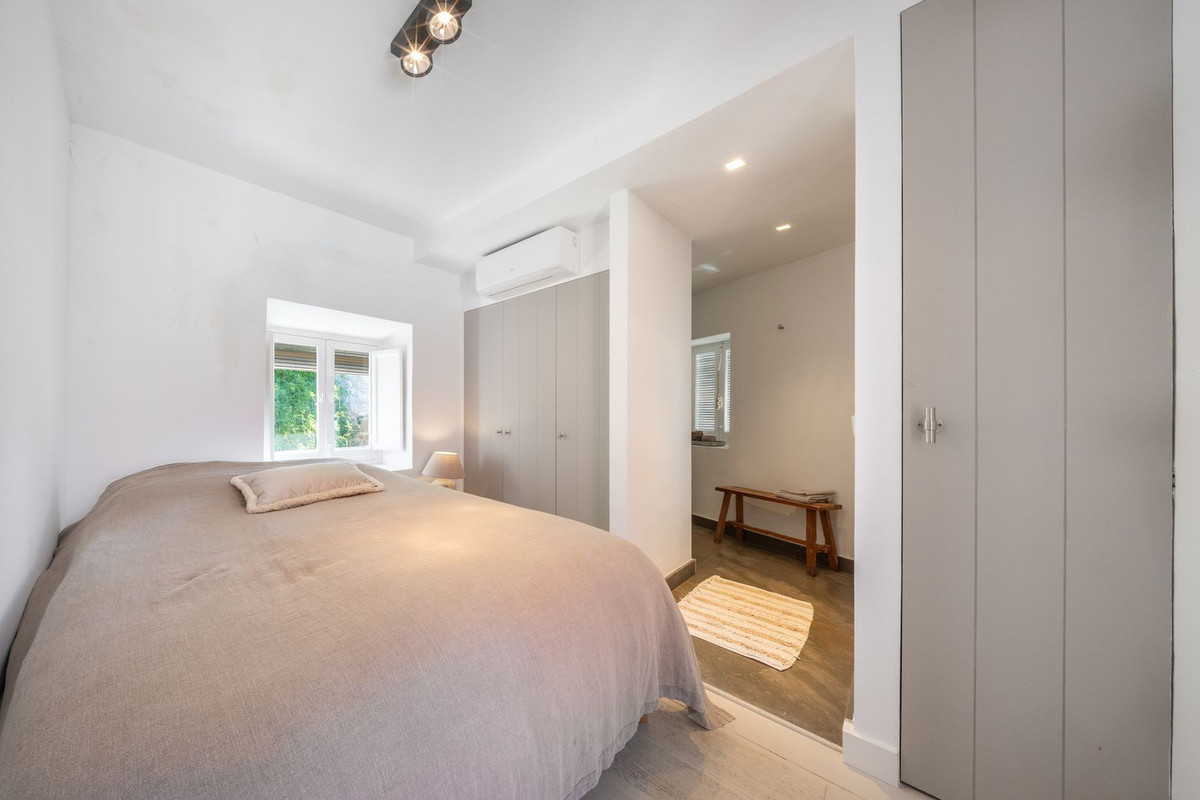 Op de bovenverdieping geeft de master bedroom uit op een ruim dakterras, het absolute hoogtepunt van de woning. Hier geniet je de hele dag van de zon, open zichten over de daken en de rustige, typische sfeer van de stad.