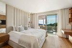 De hoofdslaapkamer heeft directe toegang tot het terras en de privétuin, waardoor bewoners kunnen ontwaken met uitzicht op de kust. De kamer heeft een goed uitgeruste en-suite badkamer met hoogwaardige materialen en verfijnde details. Twee extra slaapkamers delen een moderne badkamer, waardoor de woning ideaal is voor gezinsgebruik of het ontvangen van gasten. Een apart gastentoilet zorgt voor extra gemak en discretie.