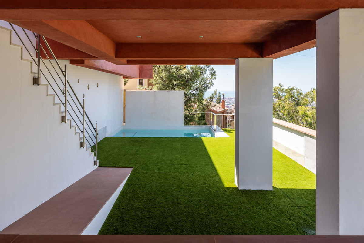 Deze ultramoderne villa in Puerto de la Torre is een meesterwerk van eigentijds ontwerp. Het meerlaagse ontwerp, vloeiende volumes en strakke lijnen creëren een visueel opvallend en zeer functioneel huis. Hoogwaardige materialen, binnen- en buitenzwembaden en ruime terrassen definiëren een levensstijl van comfort, welzijn en verfijning. Gelegen op een verhoogd perceel met veel natuurlijk licht biedt de villa privacy en ligt slechts enkele minuten van het centrum van Málaga, waardoor stedelijke nabijheid en rust samenkomen.