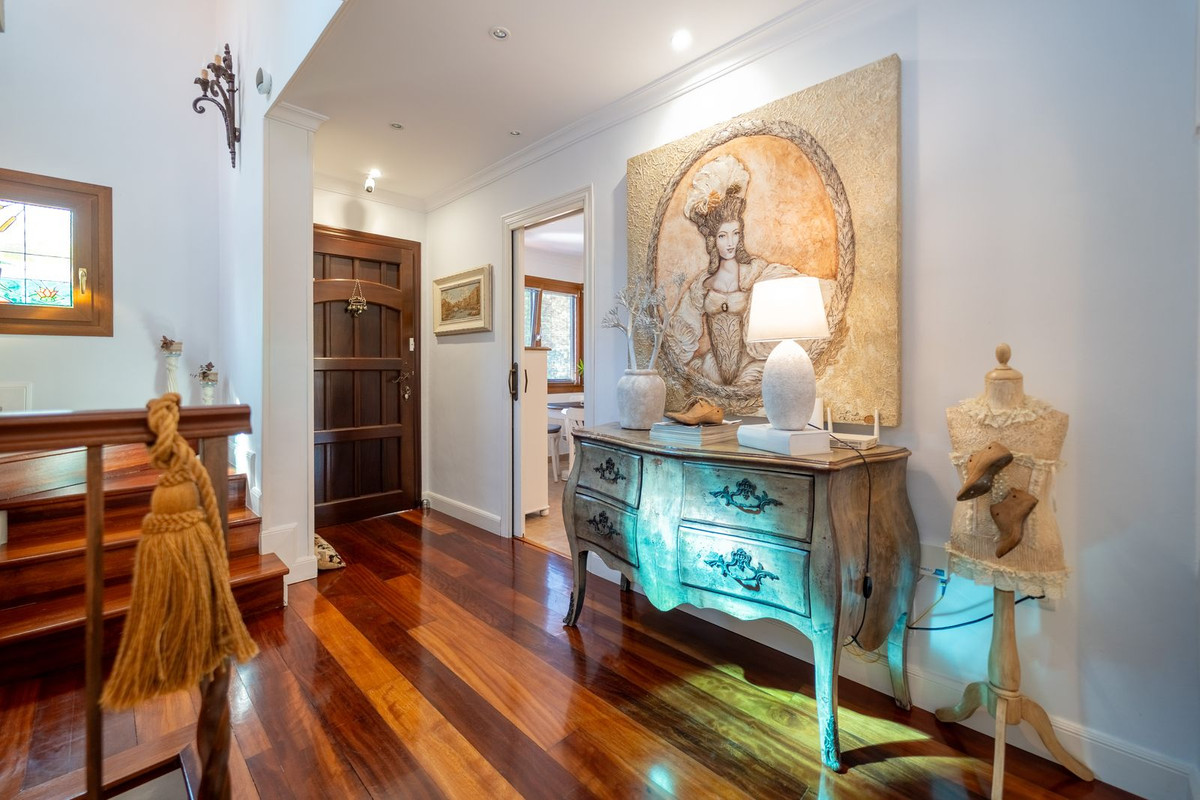 ✨ Mediterranean Villa with Private Pool in La Sierrezuela – Mijas Costa Discover this stunning villa where traditional Andalusian charm blends seamlessly with elegant Mediterranean style. Bright, private, and full of character, the property is located in a well established residential area, surrounded by nature and just minutes from all essential amenities. From the moment you enter, the home offers a sense of space and comfort. The spacious and inviting living room opens directly onto the terrace, garden, and private swimming pool, creating the perfect setting to enjoy the Costa del Sol lifestyle all year round, with pleasant mountain views. The villa features 4 bedrooms and 4 bathrooms. The standout is the master bedroom on the ground floor, complete with an en-suite bathroom, jacuzzi, and fitted wardrobes. This level also includes a fully equipped kitchen, a guest toilet, and a laundry area with direct outdoor access. Upstairs, you will find three additional generously sized bedrooms, one of which has its own en-suite bathroom, as well as a separate full bathroom for the remaining two bedrooms. All rooms are bright and benefit from private balconies. One of the key highlights of this property is the basement level—a highly versatile space featuring a kitchen, bathroom, dressing room, and independent access. It is ideal as a guest apartment, entertainment area, or even as a rental unit. The property also includes a garage with space for up to three cars. The outdoor areas are designed for enjoyment, offering a private garden, barbecue area, and swimming pool, as well as access to a well-maintained communal pool surrounded by landscaped gardens. Additionally, the property includes an extra 234 m² plot, perfect for expansion or creating new outdoor spaces while preserving the views. Notable features include air conditioning, central heating, double-glazed PVC windows, wooden flooring, and high-quality finishes throughout. The community benefits from its own water well, allowing water usage for the garden and pool to be included within the community fees. Key Features 370 m² built | 767 m² plot 4 bedrooms and 4 bathrooms Spacious living room with direct access to terrace, garden, and pool Private swimming pool Ground floor master suite with jacuzzi Basement with independent access and multiple uses Additional 234 m² plot included Fully equipped kitchen + laundry area Air conditioning and central heating Double-glazed windows Wooden flooring Private garden and barbecue area Garage for up to 3 cars Quiet, well-connected residential area Water included in community fees An ideal property for those seeking space, privacy, and quality of life, while remaining close to Fuengirola and all its amenities. Ready to move in and enjoy from day one.