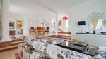 A large entrance hall opens onto a formal dining and living area with a spectacular view over the gardens and pool area. An additional study/TV-room with an elegant open fireplace to take advantage of the few cold days enhances the feeling of cosiness together with the immense kitchen, providing the necessary equipment to take pleasure in home cooking.