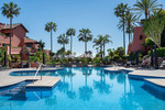 The exclusive community of Torre Bermeja is renowned for its five-star lifestyle amenities, including 24-hour security, beautifully maintained tropical gardens, tranquil artificial lakes, two outdoor swimming pools with cascading waterfalls, a fully equipped gym, and a sauna. Residents also benefit from direct beach access and proximity to the scenic coastal promenade, perfectly capturing the essence of elegant Mediterranean living in Estepona.