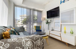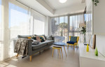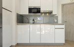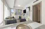 De lichte, open woon- en eetruimte beschikt over een volledig uitgeruste keuken, terwijl de ramen aan twee zijden zorgen voor een overvloed aan natuurlijk licht. Daarnaast heeft de woning een privébalkon met ruimte voor een tafel en stoelen – perfect om buiten te ontspannen.