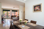 The apartment boasts a thoughtful design that allows natural light to flood every corner. The spacious living room opens onto a large balcony overlooking the communal pool, creating a perfect atmosphere for relaxation. The separate dining room also has access to its own balcony, ideal for al fresco dining. The kitchen includes a practical utility room, making everyday life easier.