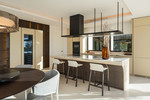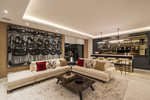 A calming neutral palette, enriched with natural materials such as wood and marble, enhances the sense of understated luxury, while meticulous attention to detail elevates every space. The open-plan living areas are thoughtfully designed to create a harmonious flow while maintaining defined zones for relaxation and entertainment. The living room invites comfort and tranquillity, complemented by curated artwork and bespoke finishes that add character and individuality.