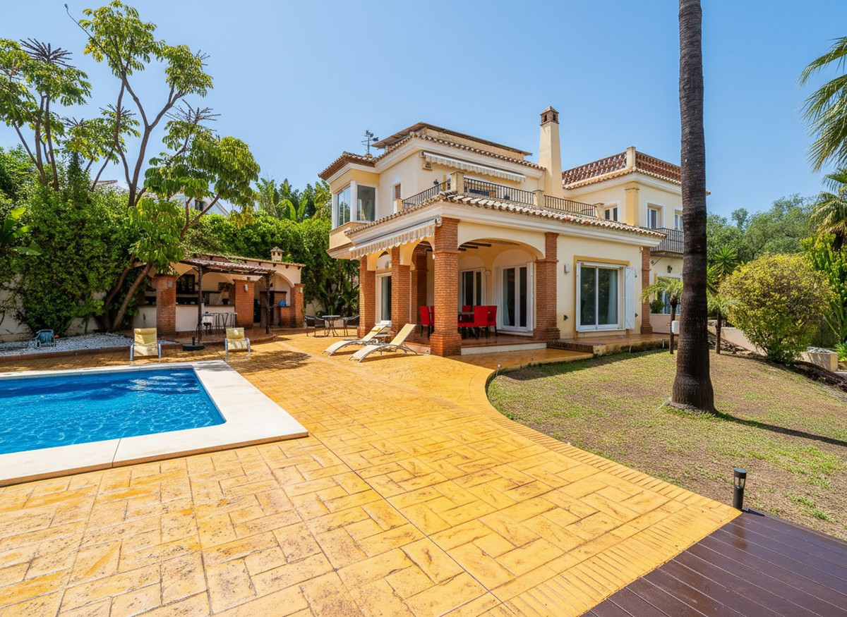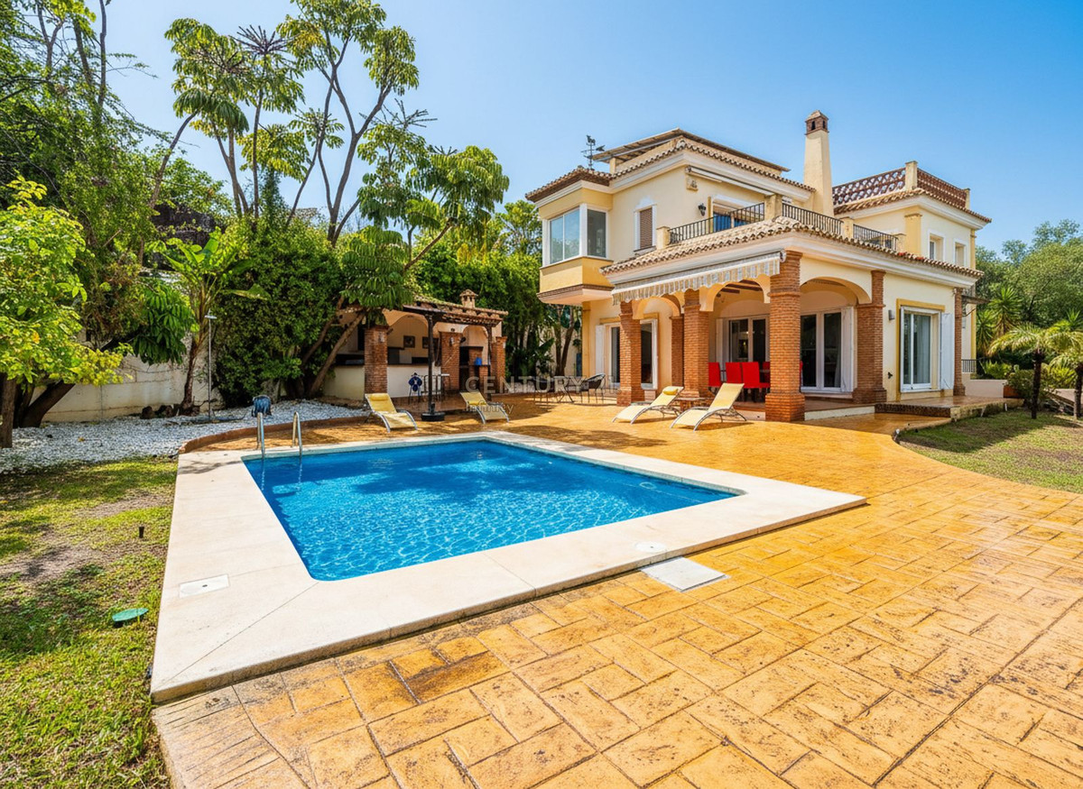 EXCLUSIVE DETACHED VILLA IN MIJAS GOLF With a spacious garden, privacy, and unobstructed views. Discover this stunning detached villa located in one of the most sought-after areas: Mijas Golf. A charming property, perfect for those seeking space, nature, and comfort just minutes from all amenities. The plot measures 1,050 m² and the house is distributed over three comfortable floors. Semi-basement: garage for two cars with storage, a water cistern room, and an ideal space for an office, games room, guest studio, gym, etc. Ground floor: This is the main living area, with direct access to the garden and pool. The entrance hall can be accessed from inside the house via the garage or from the main entrance from the exterior parking area. The entrance hall, with its high ceiling and large window, gives this beautiful home a unique character. On this floor, we have a spacious and bright living-dining room with a fireplace and easy access to the outdoors. From the living room, you can access a covered terrace, perfect for al fresco dining. The kitchen is separate and fully equipped. There is also a double guest bedroom on this floor and a full bathroom with a shower. Upstairs: This floor features another double bedroom with a dressing room and ensuite bathroom, as well as the large master bedroom. The master bedroom is an oasis of comfort and tranquility with its spacious ensuite bathroom featuring a shower and hydromassage tub, a large dressing room, and a private nook ideal for reading or meditation. The bedroom has its own terrace with unobstructed views of the Mijas mountains. The house has a rooftop solarium, perfect for enjoying the last rays of the afternoon sun. The villa is surrounded by a wonderful private garden with different areas: a swimming pool with a fantastic chill-out area, outside kitchen and barbecue, a jacuzzi, a lawn for sun loungers, and a more sheltered area for those sunny summer days. The property is south and west facing enjoying all day sunshine. Features: Photovoltaic solar panels for both hot water and electricity Integrated air conditioning Automatic irrigation system Alarm system Enjoy privacy and natural light throughout the day in a relaxed, residential setting near the golf course, yet well-connected to all amenities, schools, shops, and main roads. Experience the best of both worlds: the tranquility of nature without sacrificing city conveniences. Mijas Golf is located just 15 minutes from La Cala de Mijas blue flag beach, 10 minutes from Fuengirola and its shopping areas and 15 minutes from its beaches. It offers easy access to the motorway and is just 25 minutes from Malaga Airport. This property is perfect as a primary residence for a family, a holiday home, or an investment property for holiday rentals. Don't miss out! Contact us today to arrange a viewing.