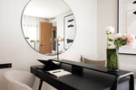 The interiors immediately impress with elegant herringbone wooden floors by renowned Norwegian brand BOEN, complemented throughout by Gunni ceramic tiles that flow seamlessly from indoors to out. Bespoke, custom-made carpentry has been thoughtfully integrated across the entire property, adding a sense of craftsmanship and individuality rarely found at this level.