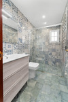 The lower level hosts four spacious bedrooms, including one with direct access to the garden and pool, while the remaining rooms are equally bright and well-proportioned.