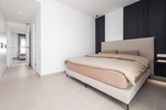 De master suite beschikt over een kingsize bed, ingebouwde kasten en directe toegang tot het terras.