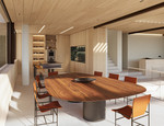 The main living level is organised around an expansive open-plan lounge and dining area that flows directly onto the principal terrace. Large sliding glass panels allow natural light to enter throughout the day while reinforcing the connection between indoor and outdoor areas. The kitchen is designed as a central social space, featuring a large island and premium appliances suited for both daily use and entertaining. Outdoor living can be further enhanced with an optional exterior kitchen and dining area, extending the usability of the terrace.