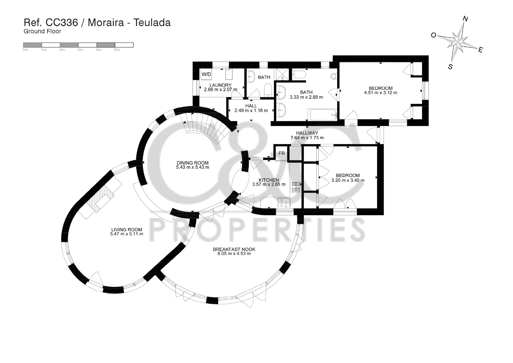 We betreden het huis via de glazen veranda met prachtige houten balken, vanaf hier leidt een dubbele houten deur ons naar de eetkamer, daarnaast hebben we een ruime woonkamer met open haard, die ook toegang heeft tot de buitenkant. Aan de andere kant van de eetkamer hebben we een volledig uitgeruste keuken, evenals de wasruimte, een gastenbadkamer en twee grote slaapkamers met inbouwkasten, waarvan één met een en-suite badkamer.