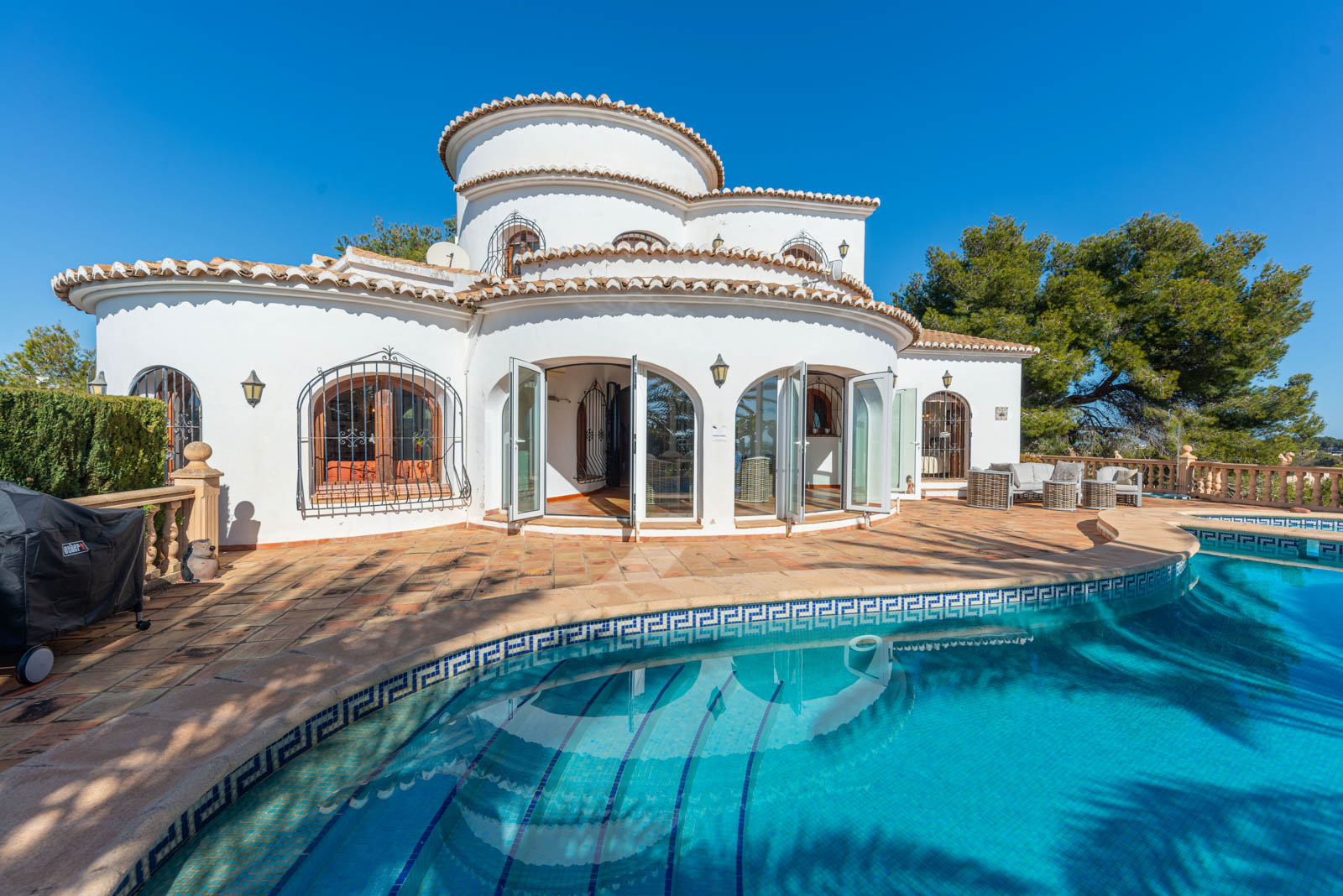Deze villa met een groot perceel te koop in Moraira, ligt hoog in het Fanadix-gebied en beslaat de top van dat gebied. Met zijn verhoogde ligging profiteert het van een panoramisch uitzicht op de zee en de bergen. Het huis is verdeeld over 3 niveaus.
