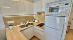 The apartment features two bedrooms, a living room/kitchen, a bathroom, and a lovely terrace, perfect for sunbathing during the day and enjoying the cool evenings on the Costa del Sol. It has been recently renovated with high-quality finishes and materials. Features include aluminum windows with high-security glass, porcelain tile flooring, top-of-the-range appliances, and carefully selected, high-quality furnishings.