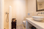 Upstairs, natural light guides you to two generously sized and bright bedrooms, each offering beautiful views that invite slow, peaceful mornings. Both bedrooms feature en-suite bathrooms finished in exquisite Moroccan tatale, a design choice that lends a unique and soulful character to the space. One of the bedrooms also includes a small walk-in closet — perfect for keeping things effortlessly organized.