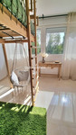 Second bedroom (the largest) with two single beds on a mezzanine level.